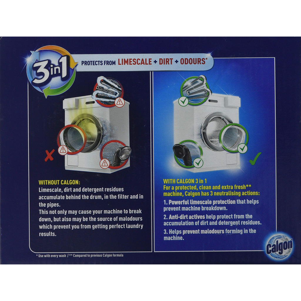 15, 30, 45 & 75 tabs. Calgon works to protect all vital parts of your washing