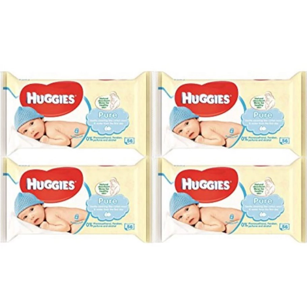 Huggies Pure Baby Wipes 56 Count (Pack of 4) 224 Wipes Total