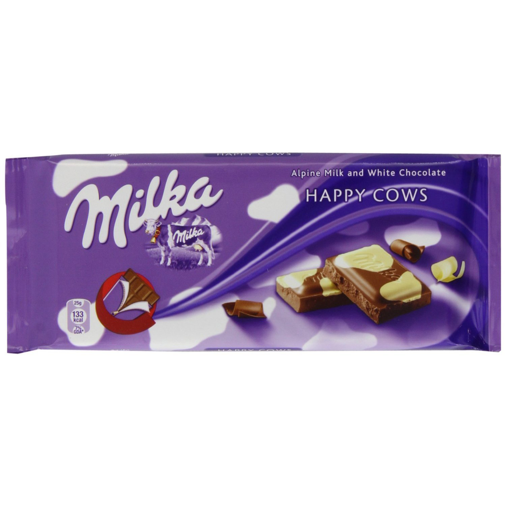 Milka Milk & White Chocolate Confection, 100g/3.5oz (HAPPY COW) - 5 Packs
