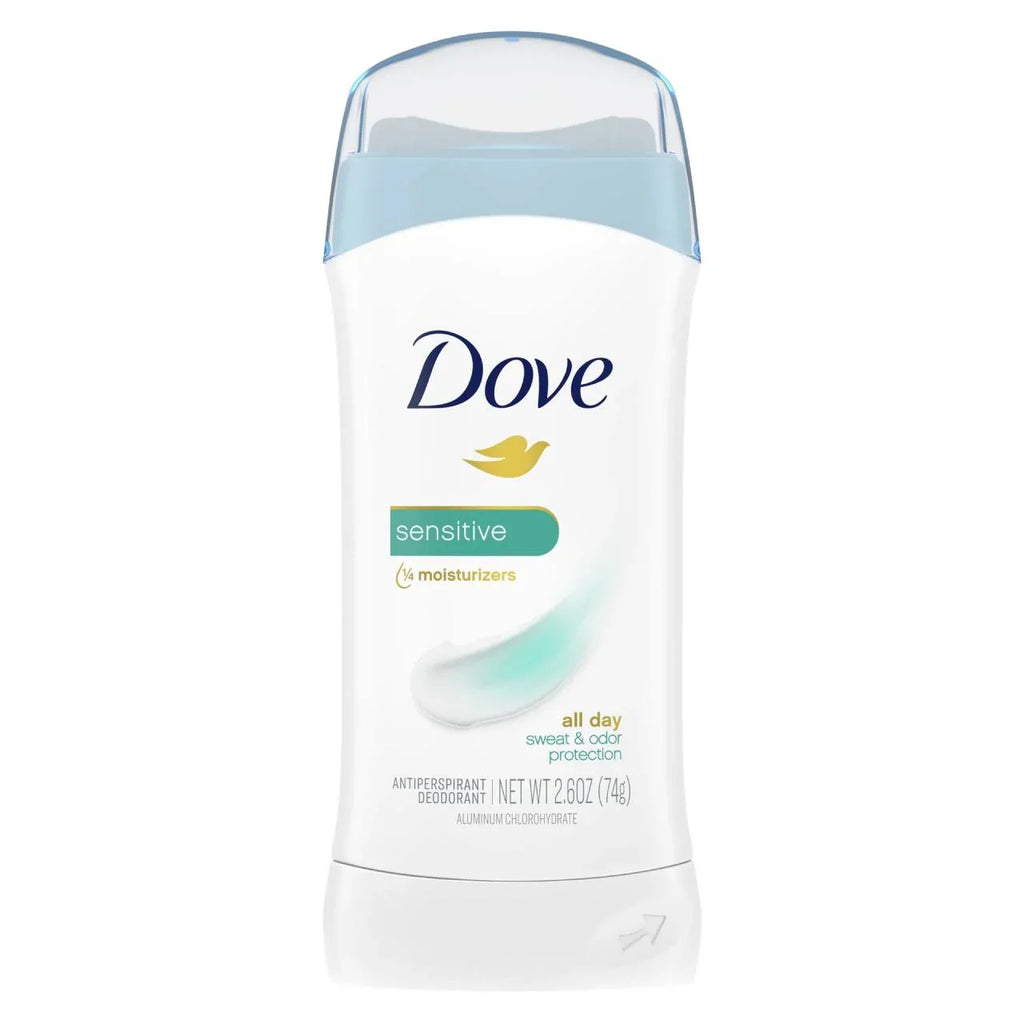 Dove Sensitive Antiperspirant Deodorant Stick is specially formulated for those with delicate or easily irritated skin. Infused with ¼ moisturizers, this 2.6 oz stick delivers all-day sweat and odor protection without compromising your skin's comfort. Whether you're heading to the office or hitting the gym, Dove Sensitive keeps you feeling fresh, confident, and cared for — all day long.