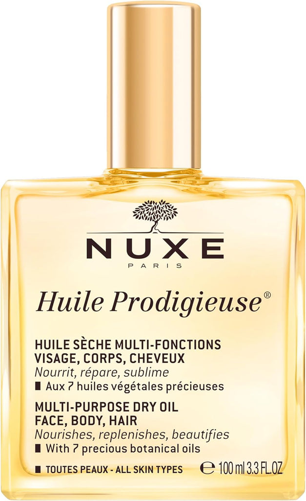Discover the luxurious touch of Nuxe Huile Prodigieuse, the iconic multi-purpose dry oil that nourishes, repairs, and beautifies your face, body, and hair in a single step.