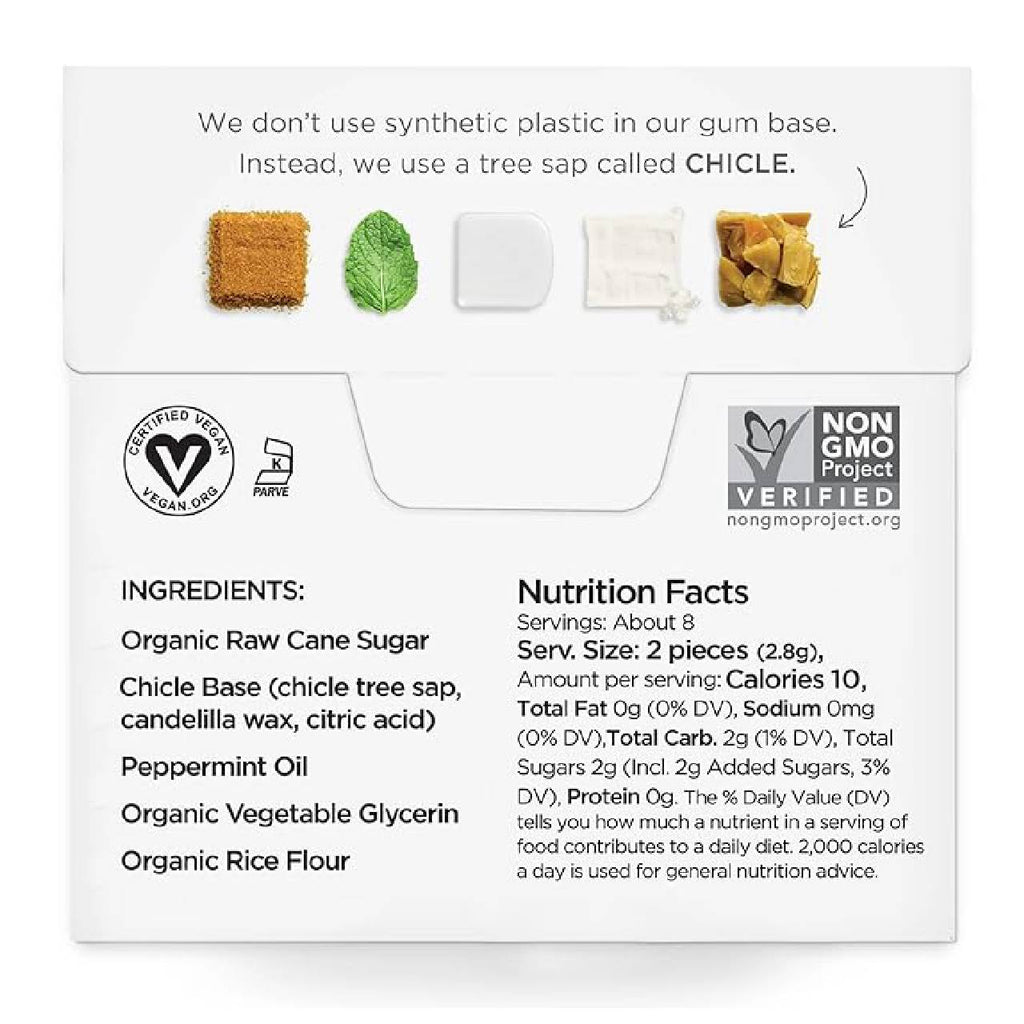 • Plastic-free, natural chewing gum with peppermint flavor
