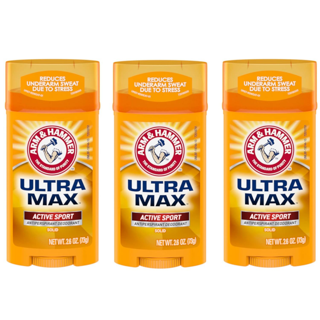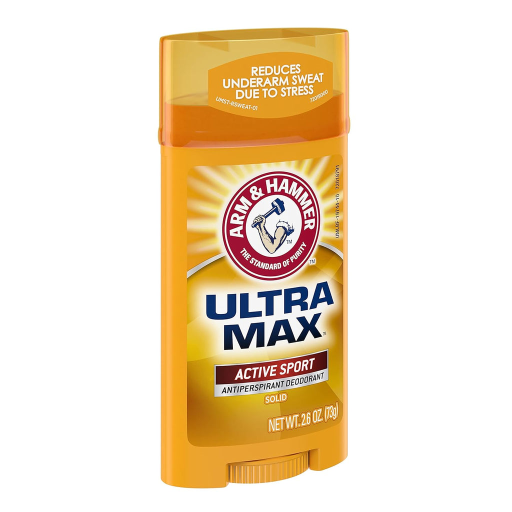 Arm & Hammer Ultramax Deodorant Stick Active Sport 2.6 oz delivers powerful, long-lasting odor protection you can rely on. Infused with the natural odor-neutralizing power of baking soda, it helps you stay fresh and confident all day, even during intense workouts and busy schedules. The Active Sport scent offers a clean, energizing fragrance, making it the perfect choice for active men. Compact and travel-friendly, this deodorant stick is ideal for keeping in your gym bag, backpack, or bathroom cabinet for everyday freshness.,