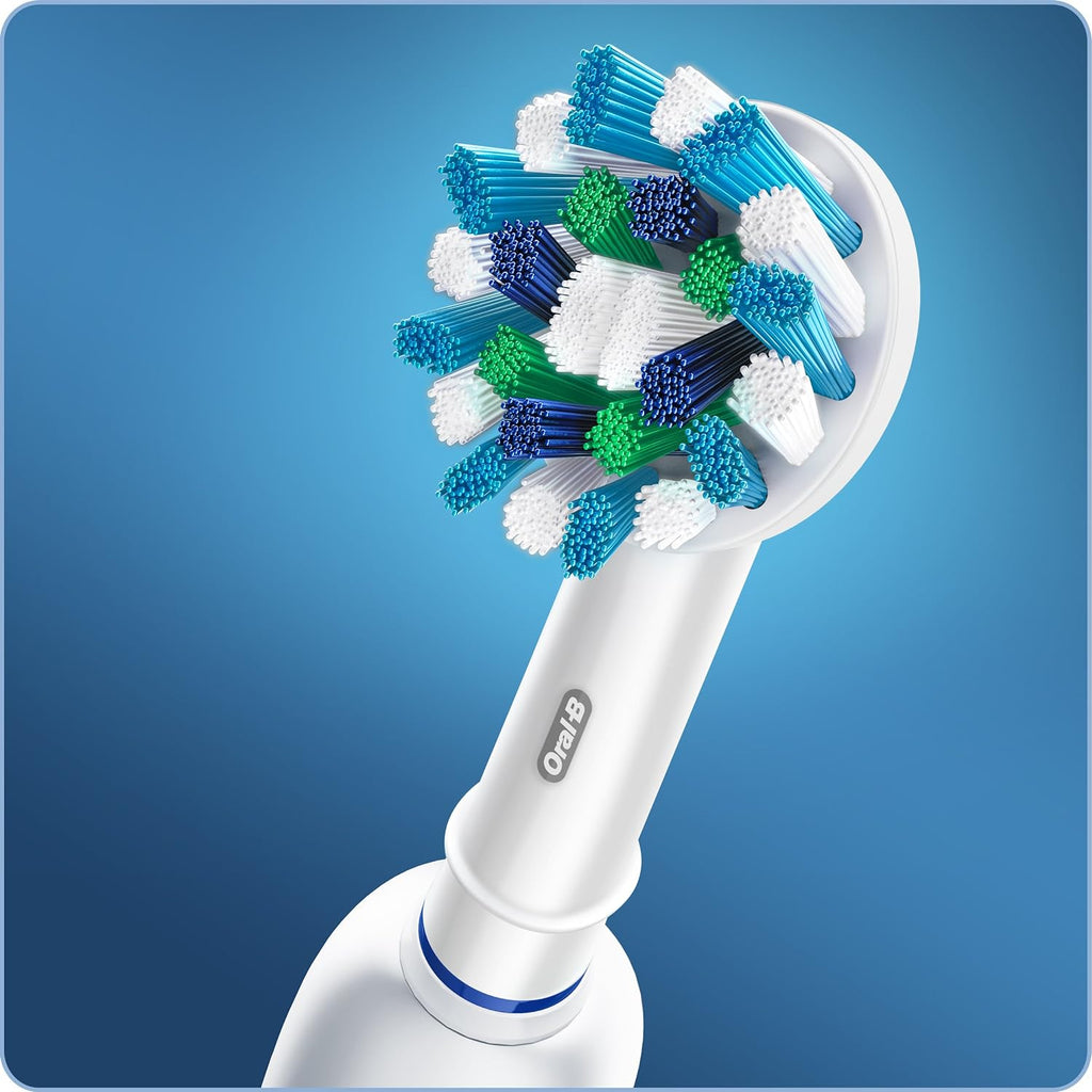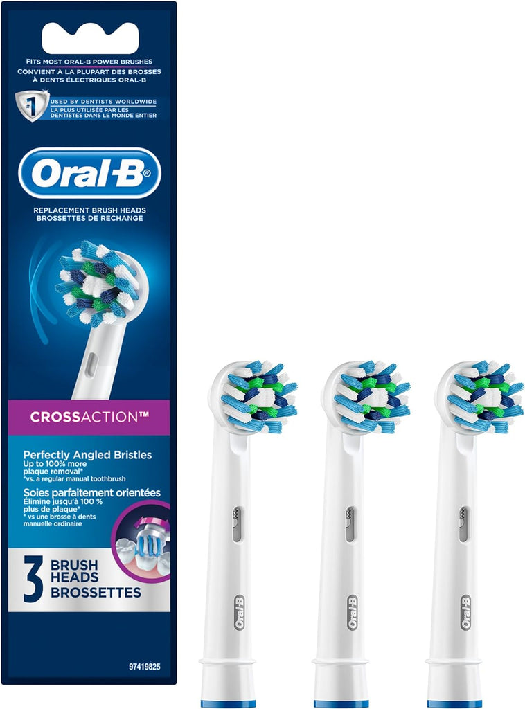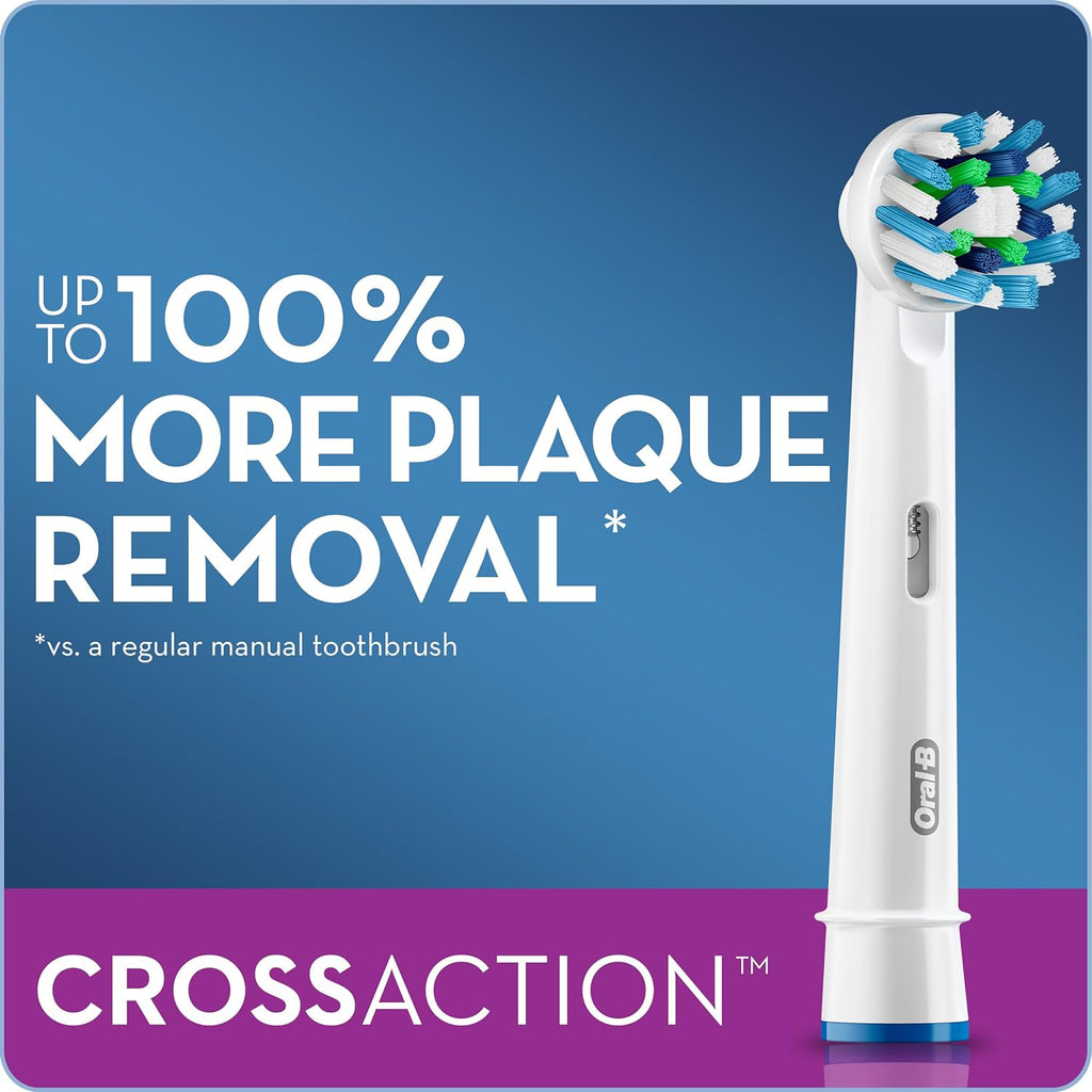 As one of Oral-B's premium replacement toothbrush heads, the Black cross Action features precise angles that targets plaque to remove up to 100% more plaque vs. A regular manual toothbrush. The shape of Oral-B's cross Action toothbrush head features specifically engineered bristles that are designed for optimal Tooth coverage. The unique bristles reach deep between teeth to remove plaque and leave your whole mouth cleaner than a regular manual toothbrush. Compatible with Oral-B Genius, Pro, smart and vitality variants. Each order comes with 4 Oral-B Black cross Action Electric Replacement Toothbrush heads.